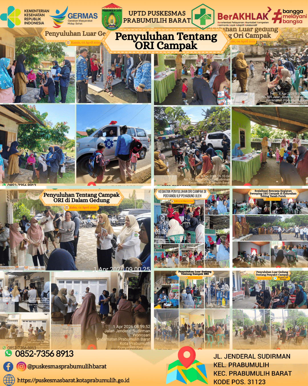 Briefing pagi staff UPTD Puskesmas Prabumulih Barat pada hari ini dipimpin oleh H. Izhar, SKM, M.Kes Sekretaris Dinas Kesehatan Kota Prabumulih. Dalam arahannya, beliau menyampaikan pentingnya peningkatan disiplin, profesionalisme, serta tanggung jawab dalam pelaksanaan tugas. Selain itu, beliau juga menekankan pentingnya sinergi dan koordinasi antar petugas guna meningkatkan kualitas pelayanan kesehatan kepada masyarakat.