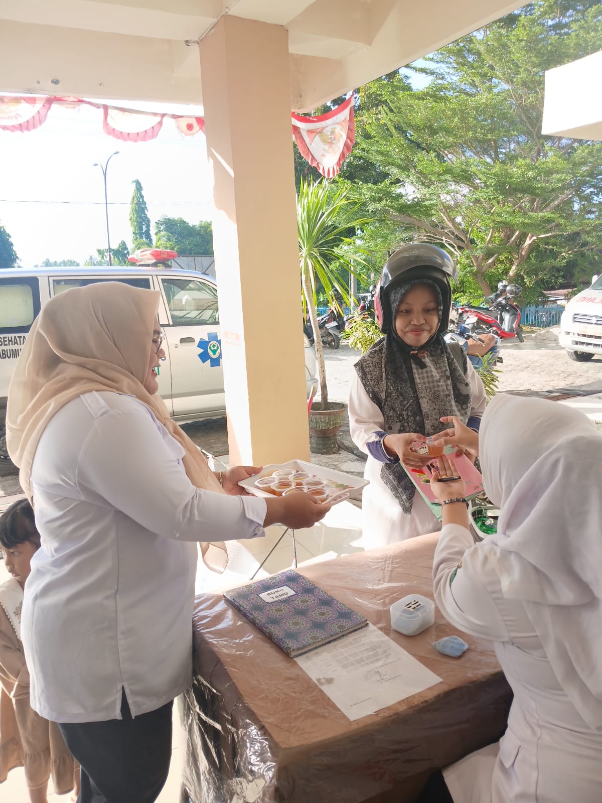 Kegiatan minum jamu \"JASEGAR\" untuk Pengunjung n Staff Puskesmas Prabumulih Barat